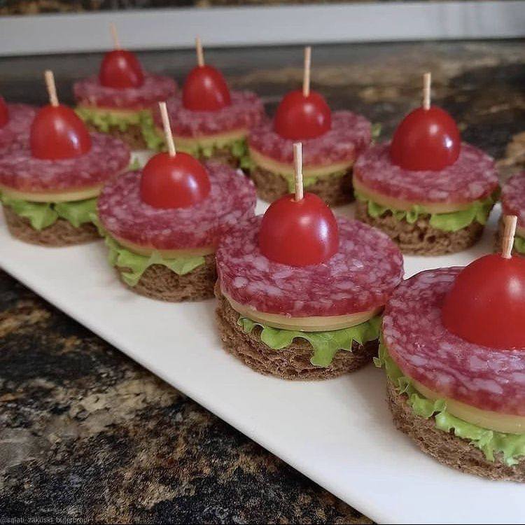 Класичний варіант – міні-тарталетки з червоною рибою та крем-сиром. Невелика основа тримає в собі ніжний сир, шматочок лосося, трохи лимонної цедри або гілочка кропу. Вони гармонують з ігристим і додають відчуття «свята з картинки», навіть якщо ви зустрічаєте Новий рік вдома у звичайних капцях.