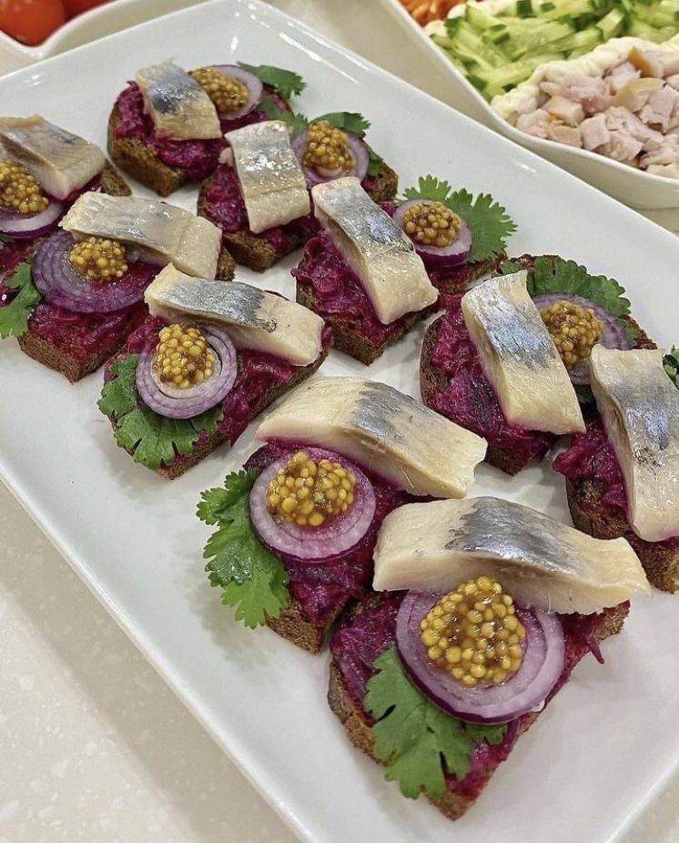 Наприклад, оселедця під шубою не обов’язково викладати у великій тарілці. Ті самі шари можна викласти у склянки або невеликі креманки. Тоді на столі з’являються барвисті порційні закуски: той же буряк, морква, картопля, оселедець, але засервірований, як ресторанний десерт.