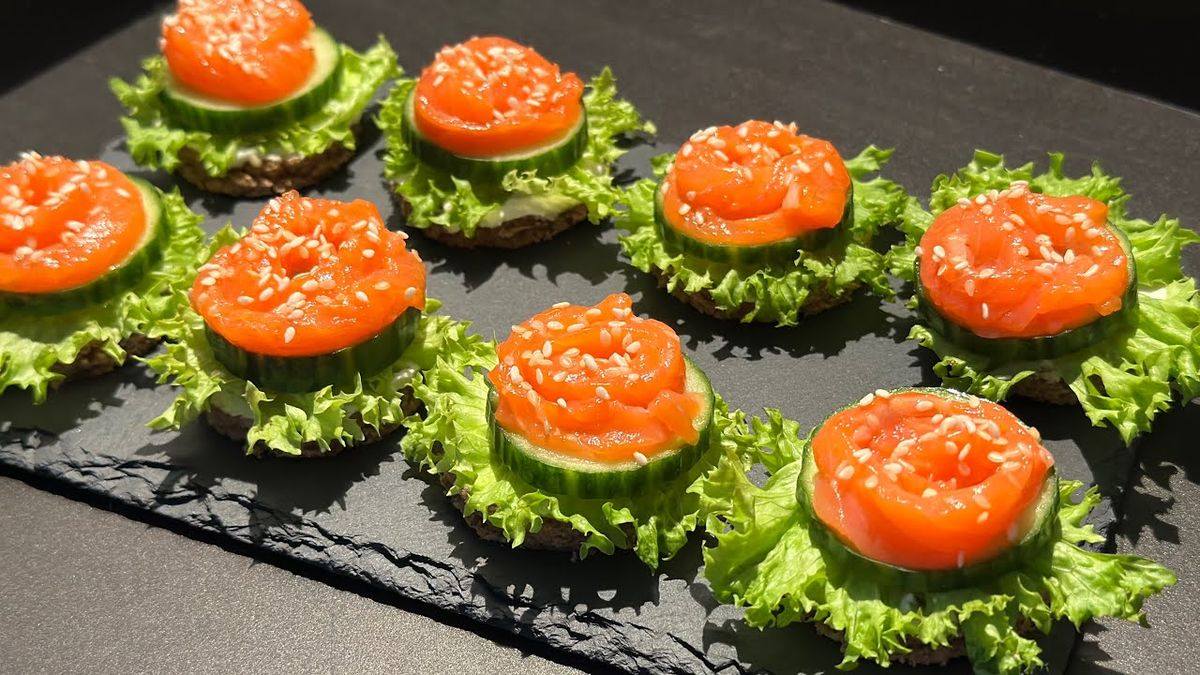 Класичний варіант – міні-тарталетки з червоною рибою та крем-сиром. Невелика основа тримає в собі ніжний сир, шматочок лосося, трохи лимонної цедри або гілочка кропу. Вони гармонують з ігристим і додають відчуття «свята з картинки», навіть якщо ви зустрічаєте Новий рік вдома у звичайних капцях.