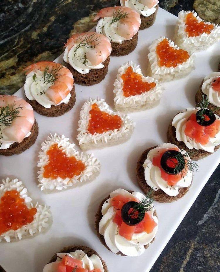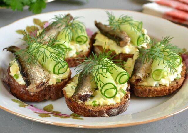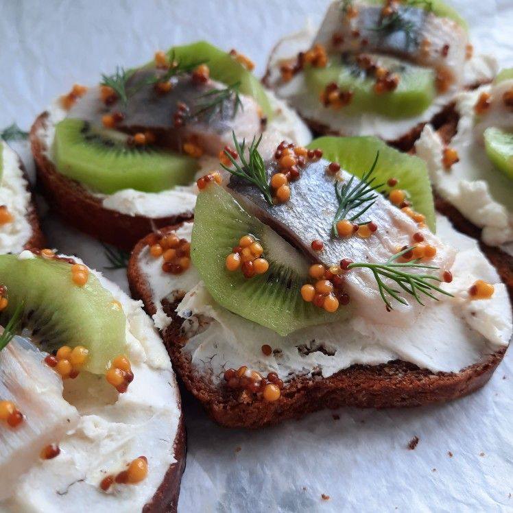 Ще простіше – канапки з лососем та авокадо. Скибка підсушеного хліба, тонкий шар пюре з авокадо, скибочка риби й кілька крапель лимонного соку. Такі закуски можна робити дуже маленькими, буквально «на один укус», щоб гість не мучився, намагаючись відкусити незграбну канапку й не забризкати святкову сорочку.