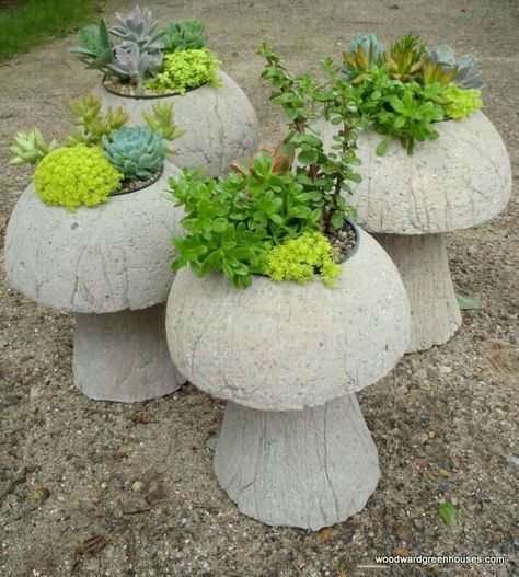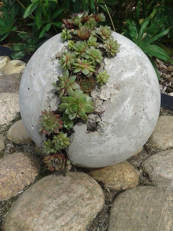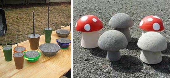 Якщо ви раніше не використовували цементний розчин із декоративною метою, краще почати з чогось простого, що не вимагає навичок ліплення. Це можуть бути гриби, кулі або горщики.