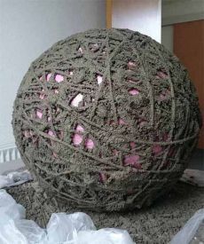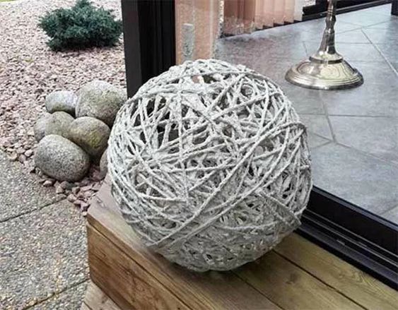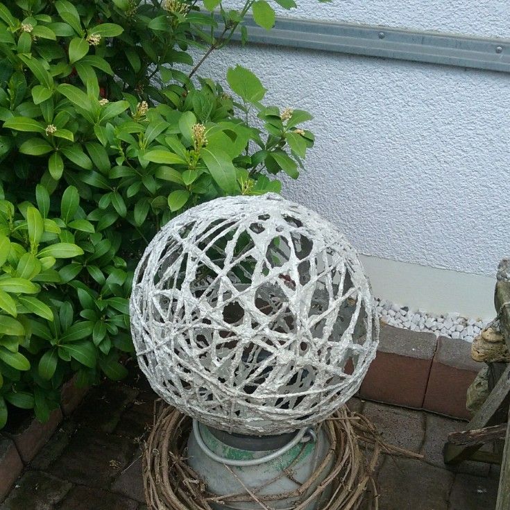 Зробити ажурну кулю теж зовсім просто. Треба надути повітряну кульку і обмотати її шнурівкою, змоченою у цементному розчині з додаванням невеликої кількості гіпсу. Після висихання цементу кульку проколоти і дістати.