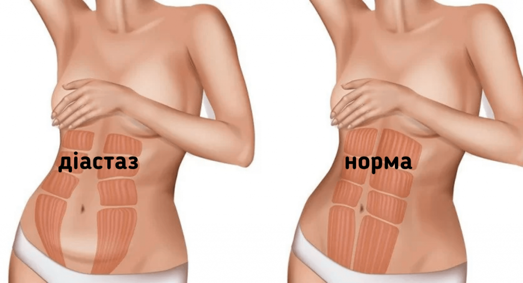 — Випинання живота навіть при нормальній вазі, слабкість м’язового корсету, порушення постави, болі в попереку і тазі, проблеми з тазовим дном (нетримання, опущення органів), порушення функції кишечника (здуття, закрепи).