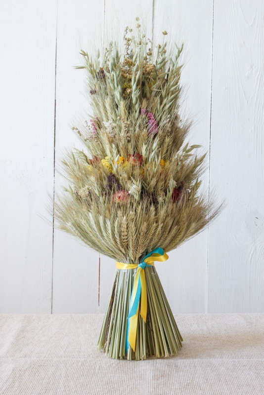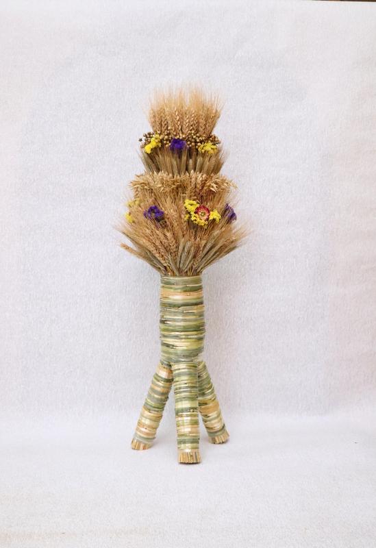 Зробити простий дідух можна своїми руками. Це може бути пучечок колосків. Його потрібно обмотати посередині, а основу розділити на три “ніжки”, кожну окремо обмотавши. Чим прикрасити дідух: