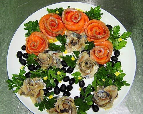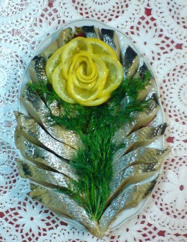• Оформлювати тарілку потрібно безпосередньо перед подачею на стіл, бо риба швидко обвітрюється і втрачає привабливий вигляд.