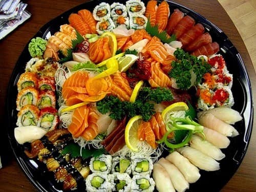 • Доповнювати рибу можна невеличкими канапками з ікрою, шпротами, оселедцем, суші.