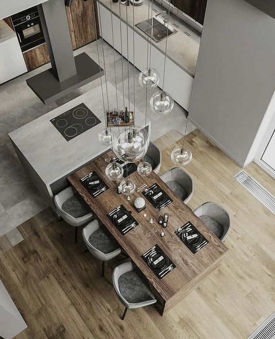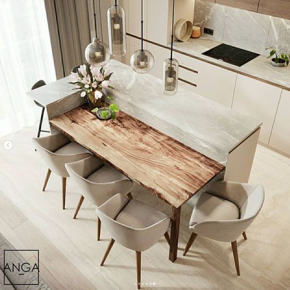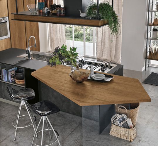 - Варто звернути увагу на форму острова, яка може бути різноманітною: від прямокутної до круглої чи нестандартних геометричних форм. Форма повинна гармонійно вписуватись у загальний дизайн кухні.