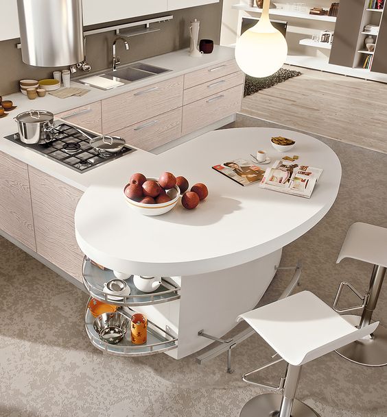 У цей момент радимо звернути увагу на ідею кухонного острова, який може задовольнити потреби у місці для їди, приготування страв та зберігання посуду. Хоча це і не омріяний круглий стіл, але він може задовольнити багато ваших потреб.