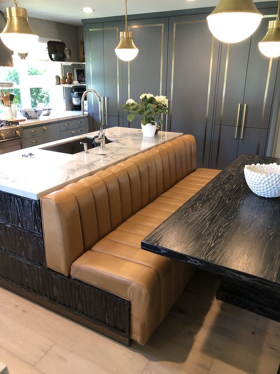 Кухонний острів є місцем для приготування їжі, обіду та відпочинку. Він особливо доречний, коли простір обмежений. По периметру кухні можна розставити шафи, розмістили побутову техніку, встановили диван, і тоді лише центр кімнати залишається вільним.