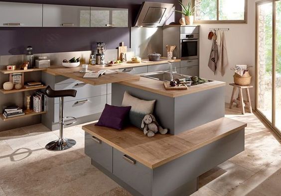 - Місце для сидіння. Кухонні острови з багаторівневими поверхнями забезпечують і місця для сидіння, і різні робочі зони. Коли є можливість розмістити під островом стільці або барні крісла, це робить його зручним місцем для сімейних зустрічей.
