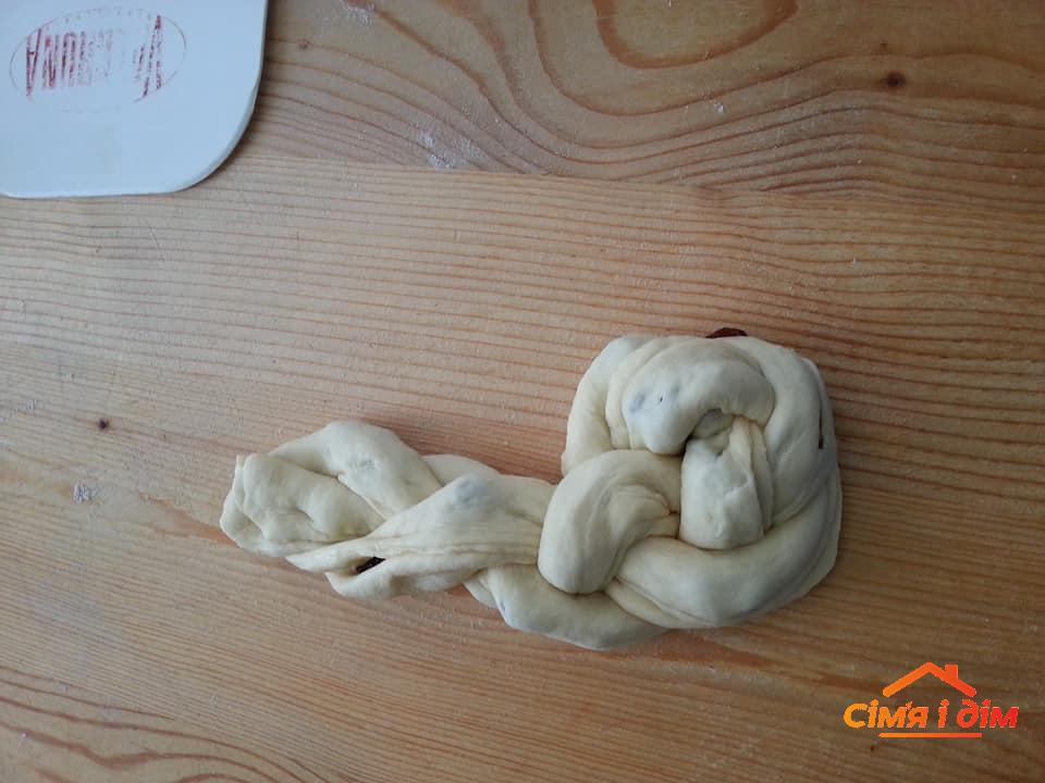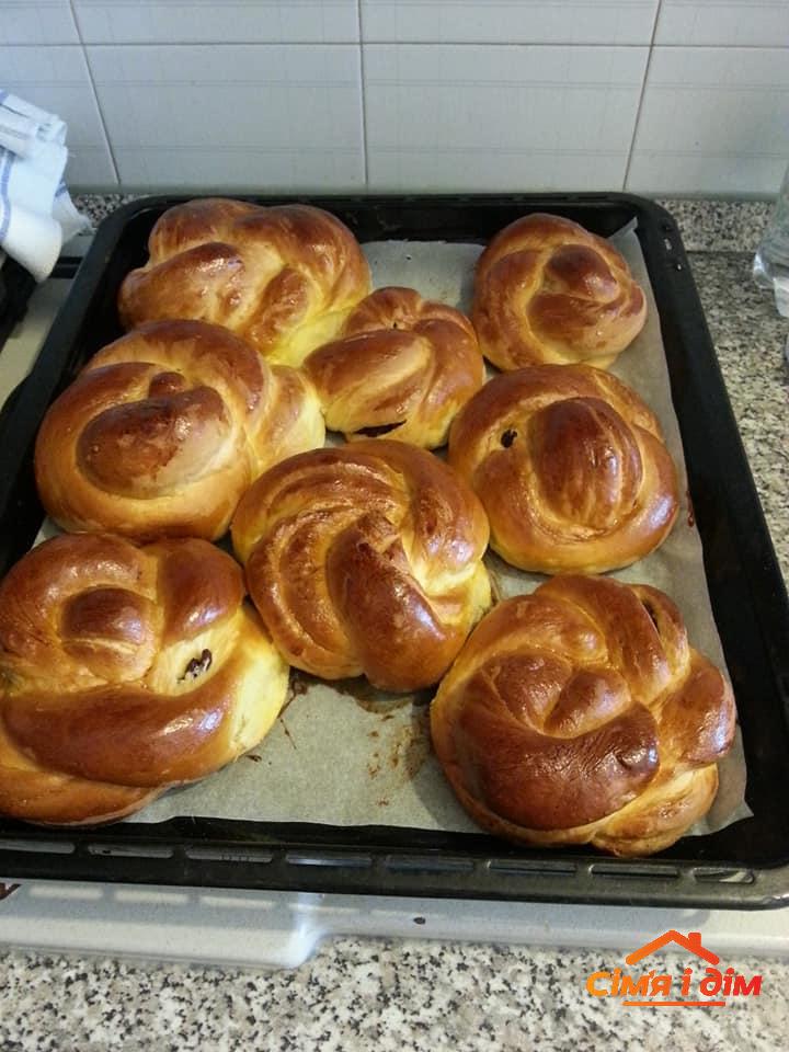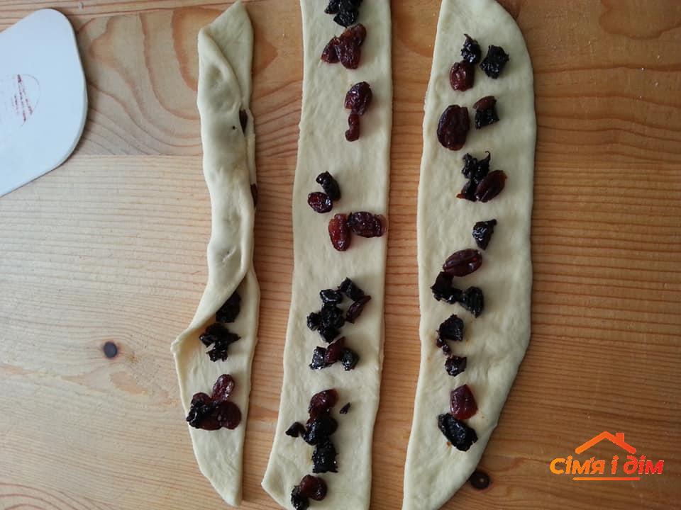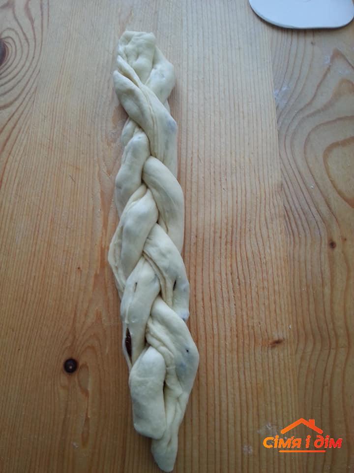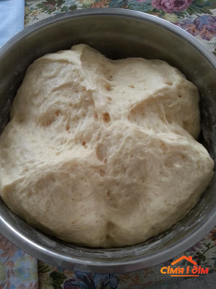 300 г теплого молока, 4 ст. ложки цукру, 20 г дріжджів, 1 ст. ложка олії, 2 яйця, 50 г масла, 600 г борошна, ваніль, дрібка солі.