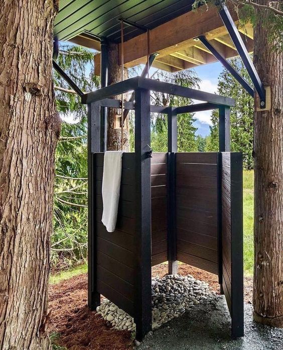 Для забезпечення приватності та комфорту, подумайте про встановлення захисного паркану або живої огорожі навколо душової зони. Це може бути не лише функціональним рішенням, але й чудовою можливістю для ландшафтного дизайну, дозволяючи інтегрувати душову зону в загальну композицію саду або подвір’я.