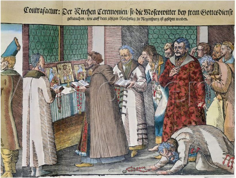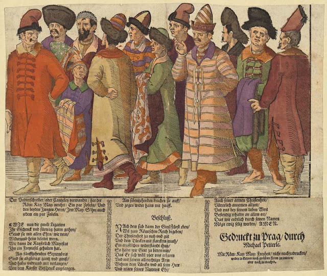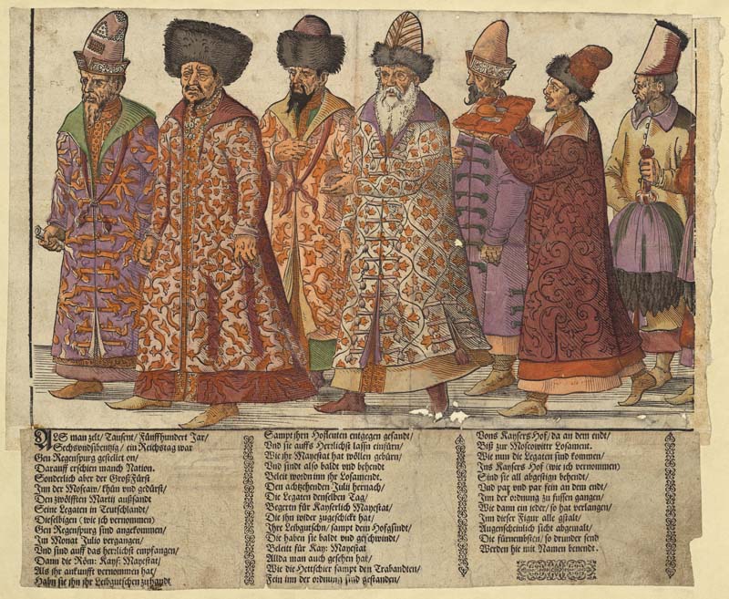 Після відвідин послів з московії 1576 року Габсбургів німці зробили перші детальні кольорові зображення московитів. Історики вказують на їх неймовірну точність у передачі деталей. Однак кремль не любить згадувати про це джерело, адже посли московії виглядали як китайські чи монгольські дикуни, що резонує із їх заявками про “самость московской русі”.