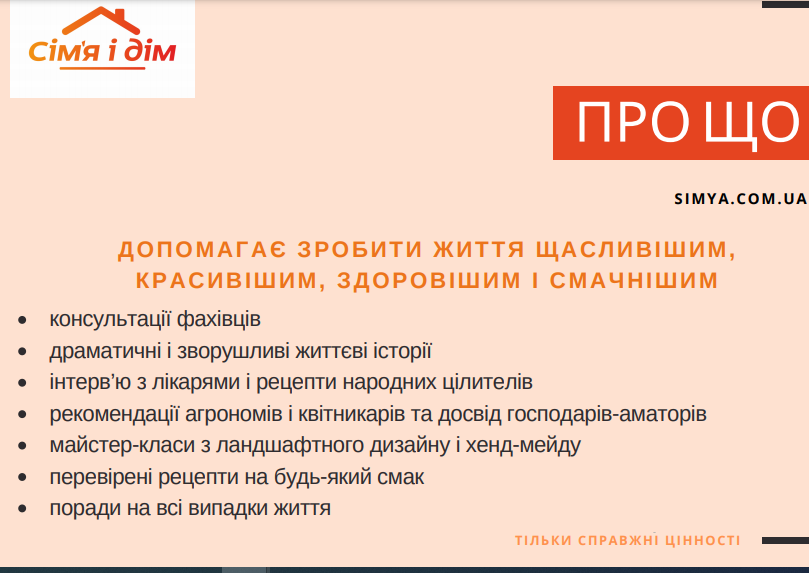 Публікації на сайті мають винятково інформаційно-довідкову ціль і не є медичними рекомендаціями. При перших ознаках захворювання зверніться до лікаря! Самолікування може бути небезпечним для вашого здоров’я! Копіювання будь-яких матеріалів або їх частин, розміщених на сайті “Сім’я і дім”, дозволяється лише за умови прямого і відкритого для пошукових систем посилання на simya.com.ua
