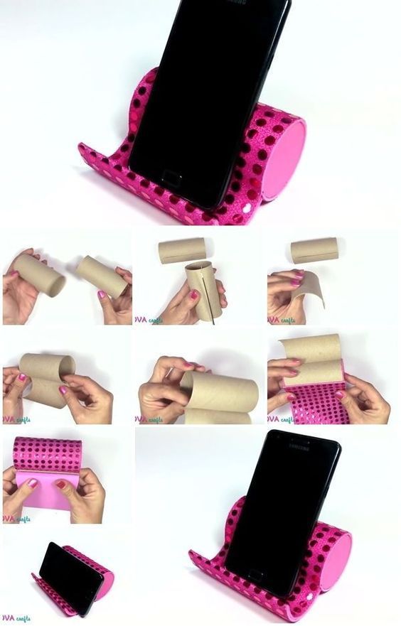 Із циліндрів можна зробити дуже зручну і практичну підставку для смартфона та контейнер для дротів.