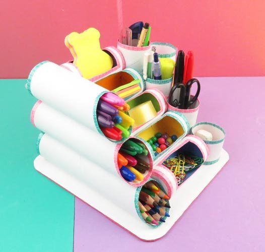 Не хочете їх викидати – і не треба. З цих картонних тубусів можна виготовити безліч красивих і корисних речей. Наприклад, органайзер для канцелярії, косметики або прикрас.