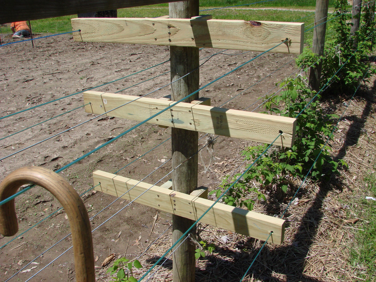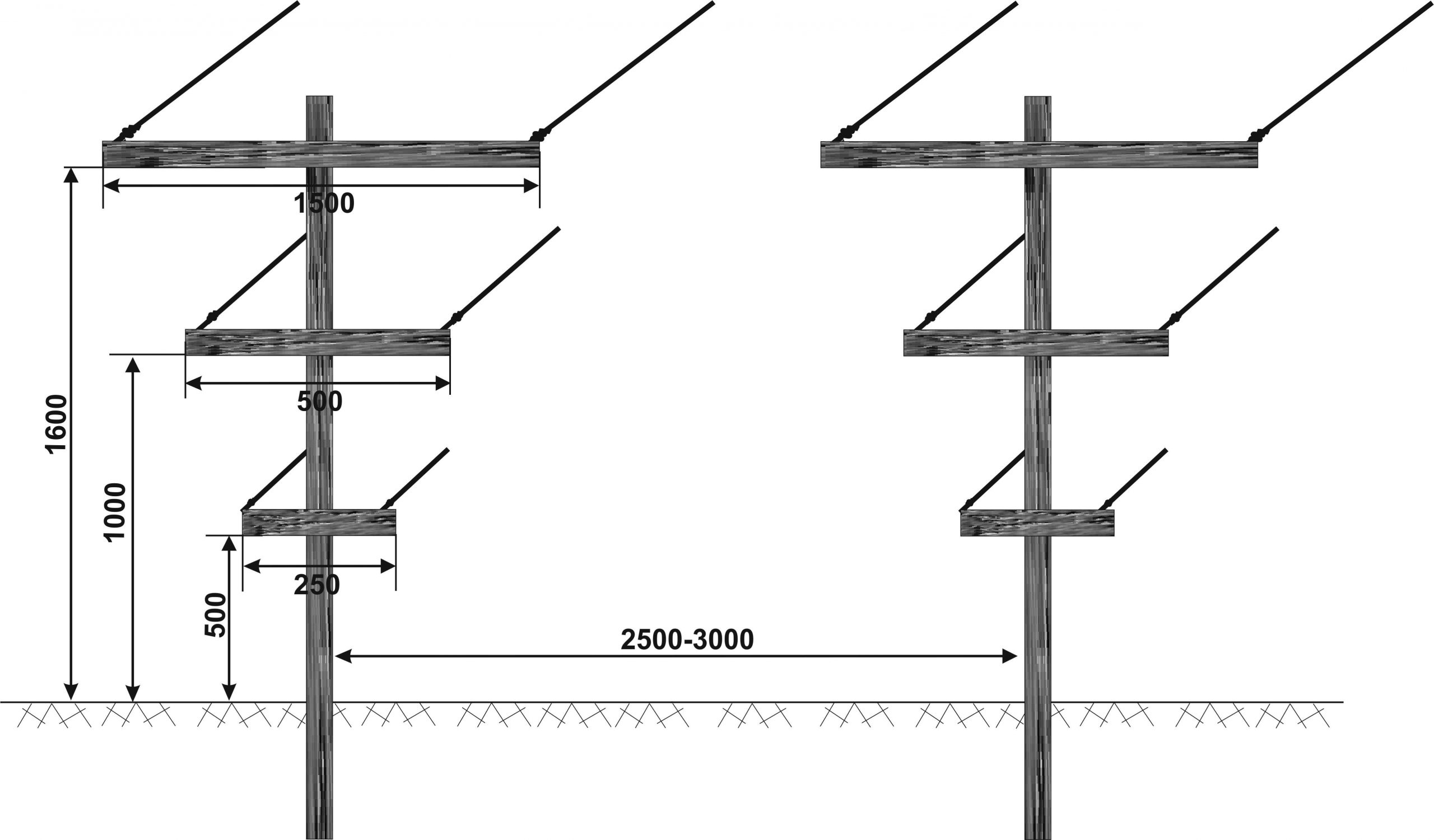 Цей тип опор дозволяє натягнути матеріал (сітку або дріт) в одній або двох площинах. Недоліком є те, що такі стовпи не підходять для підв’язування молодих пагонів невеликої висоти, але за бажанням можна прикріпити до них додаткові поперечки.