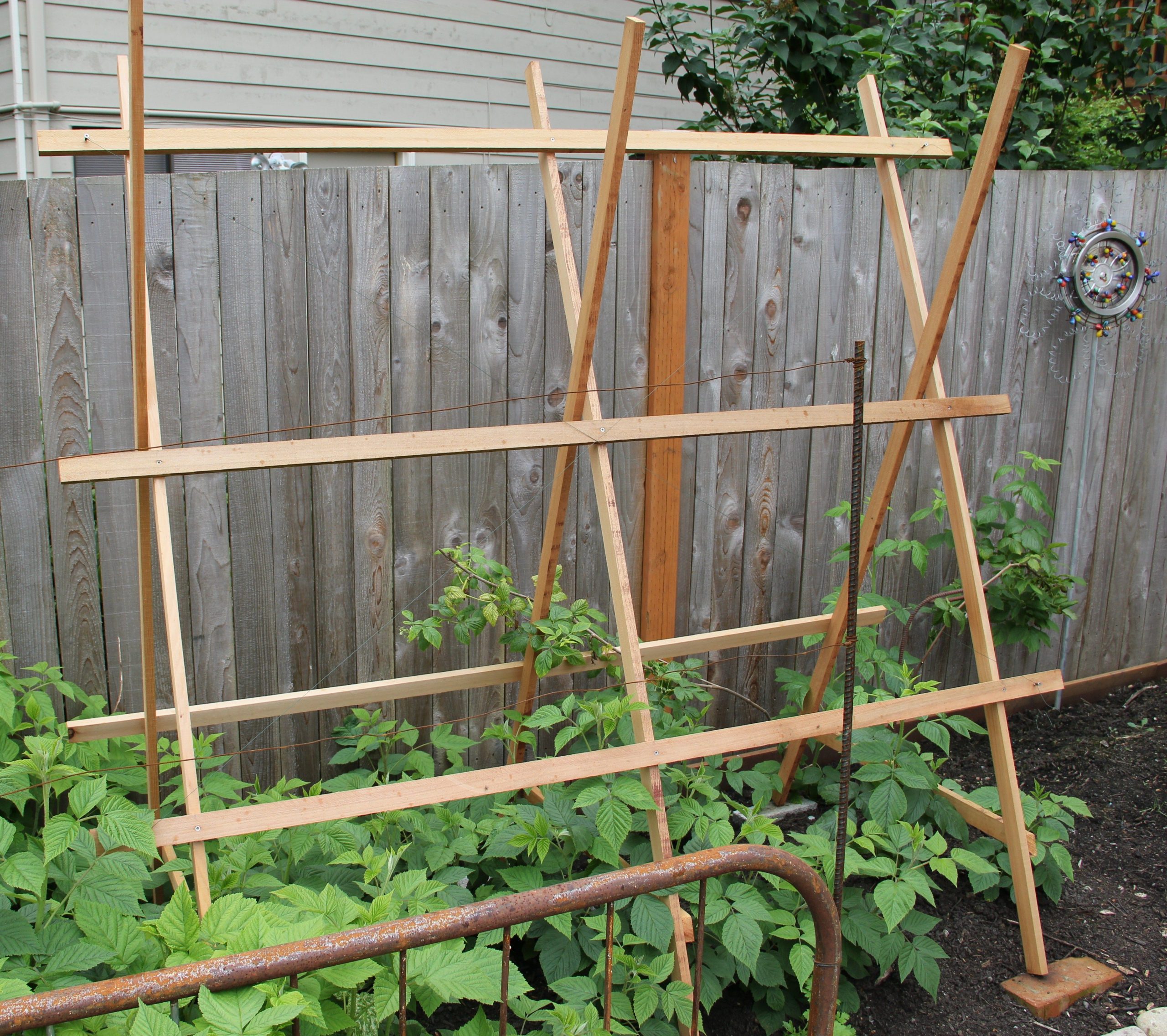 Для виготовлення таких опор можна використовувати гілки осики, залишки арматури, труб або брусків. Триногу складають з трьох відрізків матеріалу, які з’єднують у верхній частині. Нижні кінці розсувають і встромляють в ґрунт. Такі «стовпчики» можна легко прибирати на зиму.