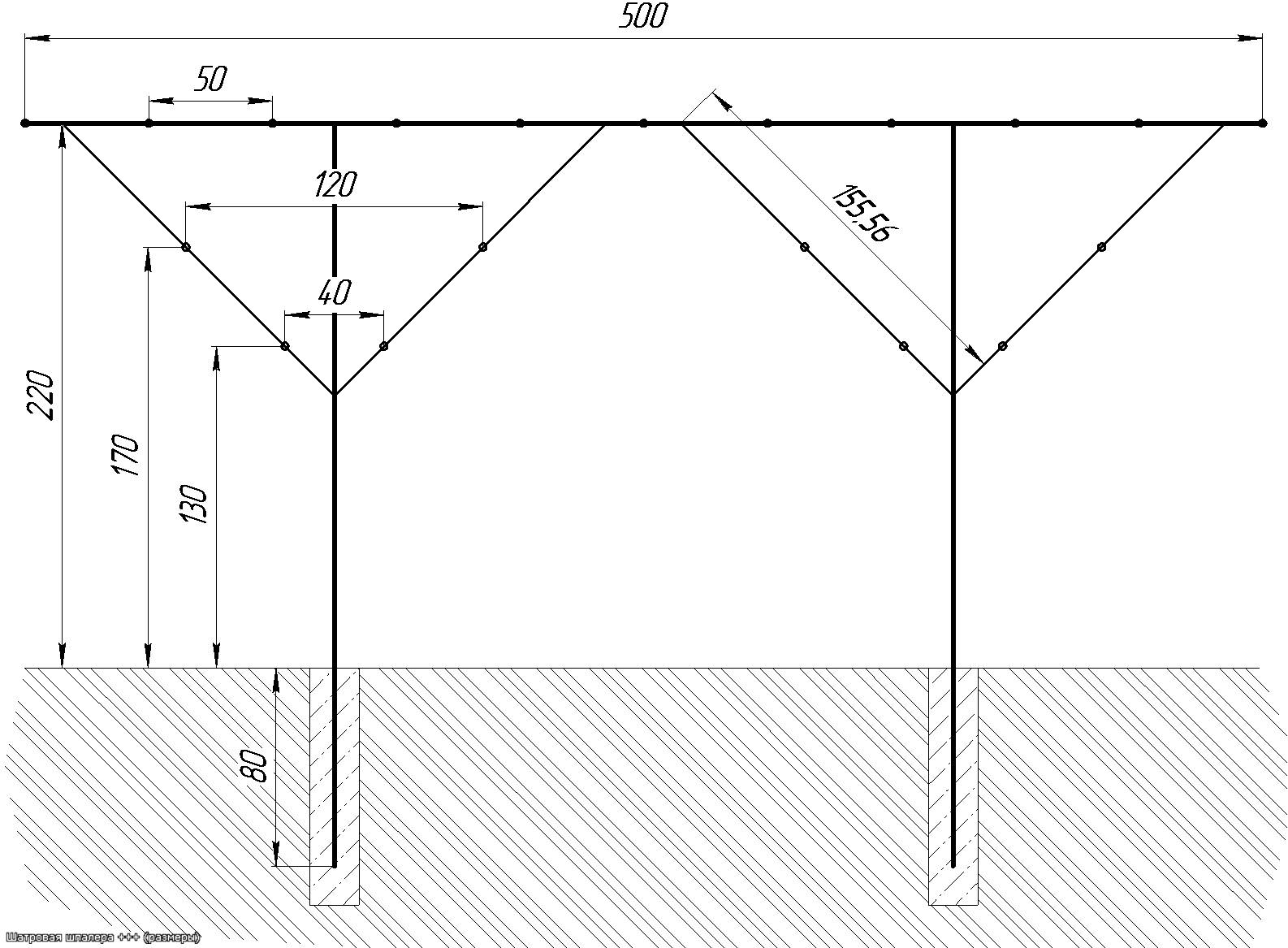 Варіант №5: Поліпропіленові трубки. Ця конструкція може бути стаціонарною або тимчасовою. Поліпропіленові стовпи добре витримують навантаження, довговічні та надійні. Вони підходять для зимового укриття рослин, оскільки їх можна легко демонтувати. Щоб уникнути провисання, поліпропіленові стовпи потрібно розміщувати часто, а для додаткової стабільності до нижньої частини стовпів прикріплюються хрестовини.
