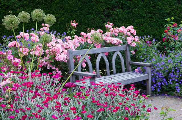 - Контраст кольорів. Сизі рослини чудово підкреслюють яскраві квіти, створюючи ефектний контраст. Наприклад, поєднайте сріблястий стахіс з червоними або фіолетовими квітами, такими як пеларгонії або лаванда, щоб підкреслити насиченість кольорів.