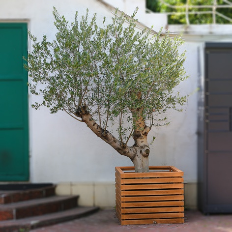 Оливка має чудовий вигляд у просторих горщиках із натуральних матеріалів — глиняних, кам’яних чи бетонних. Такі ємності не лише прикрашають інтер’єр, а й додають стабільності рослині.