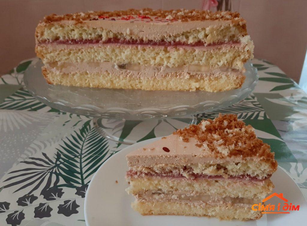 Простий та вдалий бісквіт із заварним кремом та ягідним мусом. Неймовірний торт!