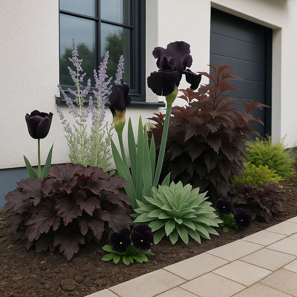 Темні квітники — це особливий напрям ландшафтного мінімалізму та емоційного садівництва, який поєднує темні (чорні, пурпурні, бордові, сливові) листя і квіти з «димними» та сріблястими рослинами.
