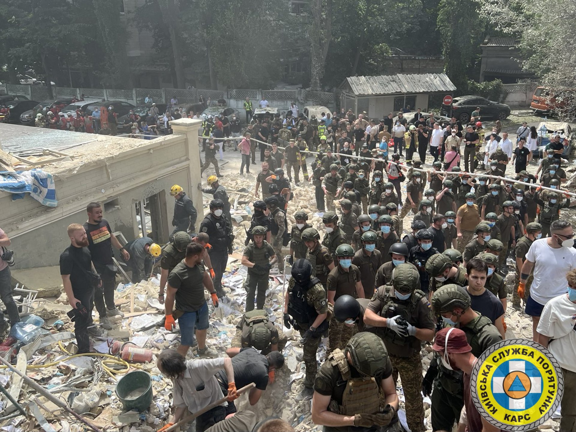 Фотографії з лікарні “Охматдтит” опублікувала керівниця пресслужби, начальник відділу у Департаменту муніципальної безпеки КМДА Жанна Куява. 8 липня 2024 року росіяни прицільно вдарили ракетою по цьому медичному закладу. На місці загинули 22 людини, десятки отримали порання… Здається, все місто прийшло до лікарні розбирати завали…