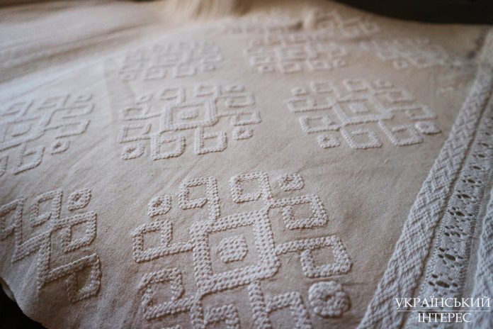 До того ж рушники використовували й як аксесуари. Зокрема, ними підперезували дівчат на весілля та робили з них головні убори. Наприклад, намітка є традиційною для Буковини, Івано-Франківської області. Він зітканий з льону і прикрашений вовняною ниткою. І за рахунок фактури створюється гарний світлотіньовий ефект. Намітки – це жіночий головний убір, адже його вдягали після заміжжя, й дівчата наміток не носили. А жінка у вже солідному віці ходила у такому вбранні до церкви.