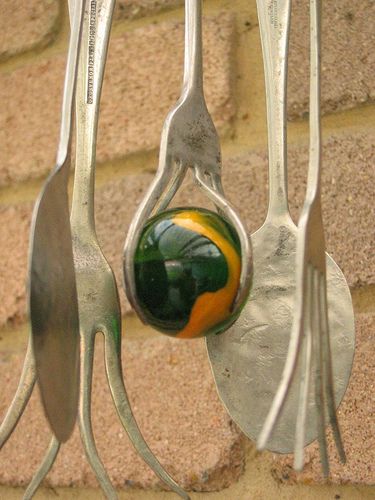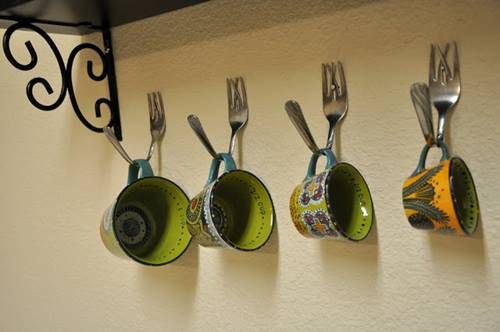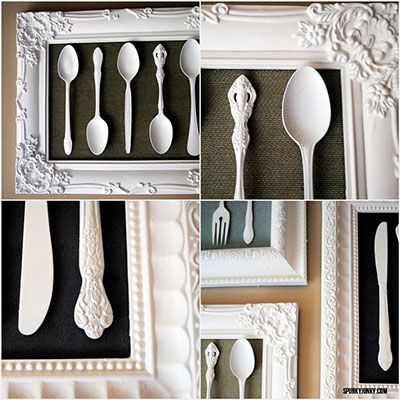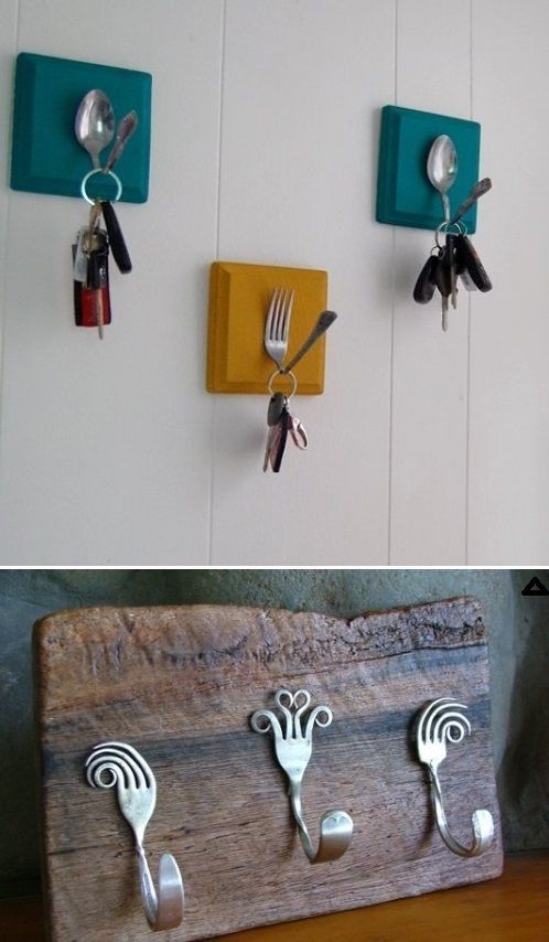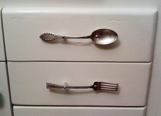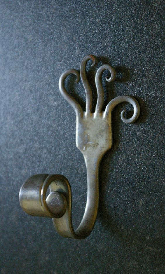Із вилок та ложок де просто зробити меблеву фурнітуру: ручки до дверець або гачки. Такі аксесуари будуть дуже доречними на кухні. Також з них виходять ефектні настінні декоративні панно. Усе, що потрібно, – це рамка, основа і кілька столових приборів.