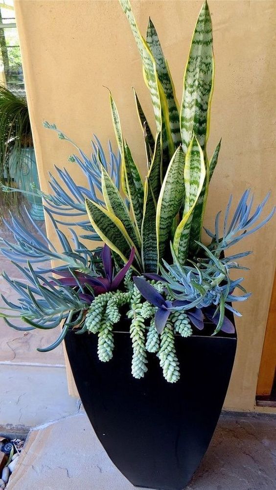 - Правило “один високий, один пухнастий, один повзучий”. Комбінуючи рослини різної висоти та форми, можна створити гармонійну та привабливу композицію.