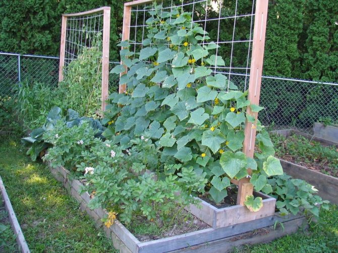 Вирощування огірків на шпалері або опорі дає багато плюсів:
