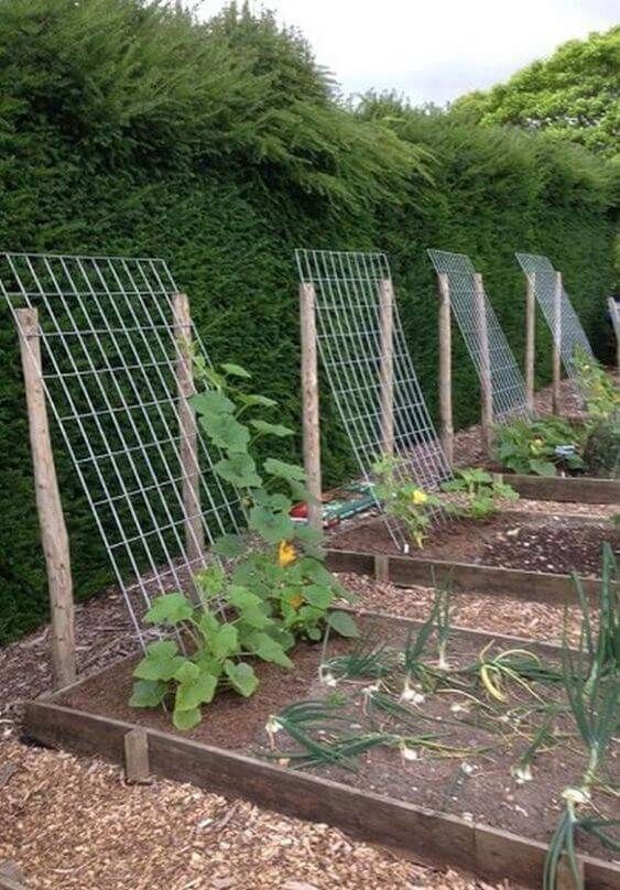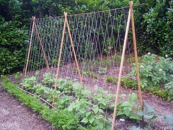 Фотоідеї облаштування шпалер та опор для огірків