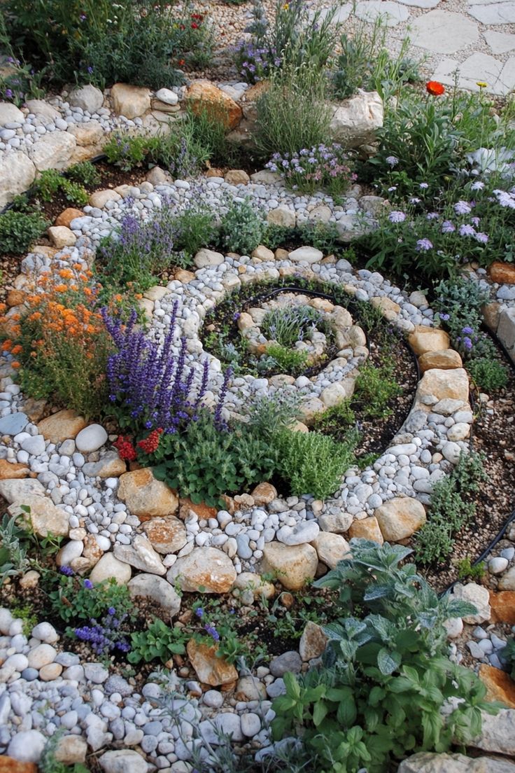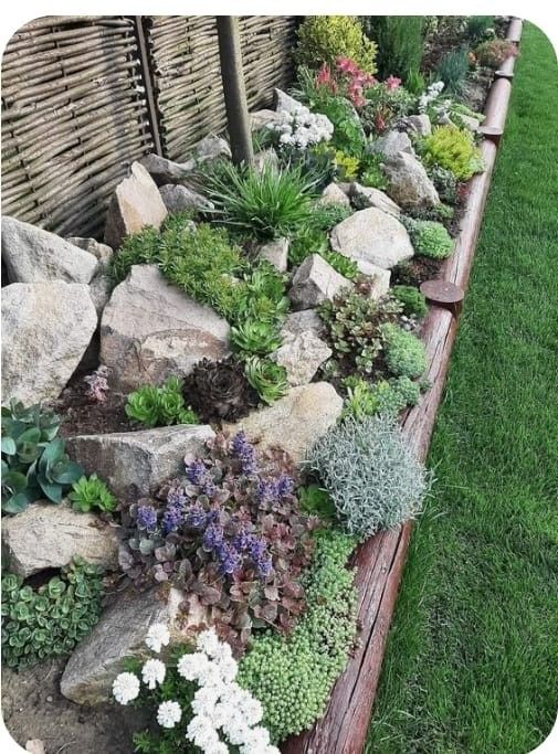 Між камінням висаджуйте рослини, які добре почуваються на схилах: низькорослі сукуленти, альпійські трави, гірські квіти.