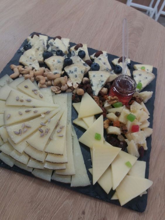 Сири нарізають різними формами: кубиками, трикутниками, тонкими скибками. Великі головки м’яких сирів можна залишити цілими, лише зробивши кілька надрізів для зручності. Для прикраси використовують горіхи, мед, виноград, інжир та ягоди. Важливо правильно поєднати смаки: до солоних сирів добре пасуватиме мед, а до м’яких — свіжі фрукти. Кілька гілочок розмарину або м’яти додадуть тарілці свіжості та святковості.