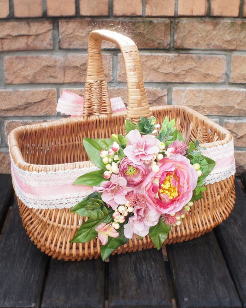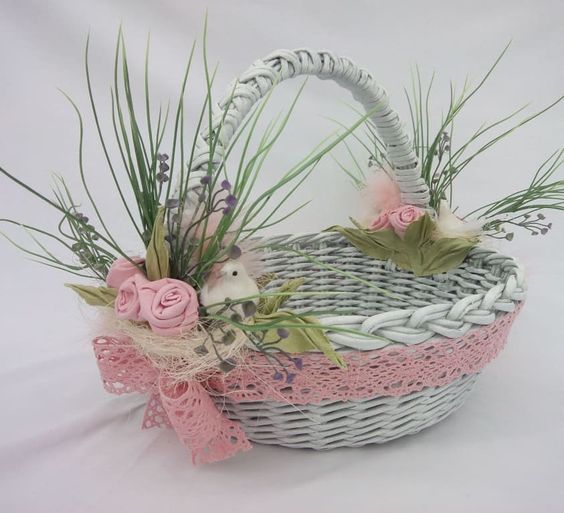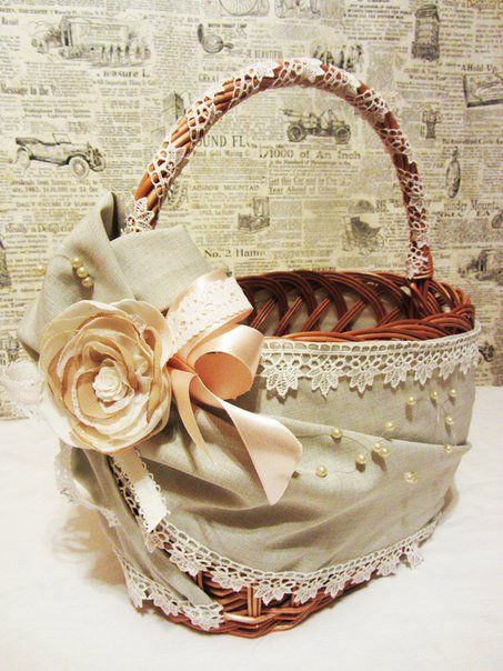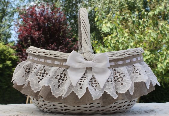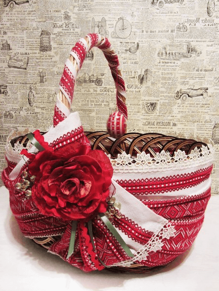 - Досить легко власноруч прикрасити кошик атласними або мереживними стрічками, зробити гепюрову “спідничку”.
