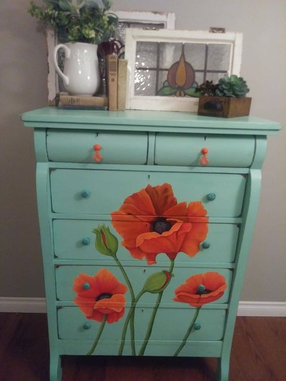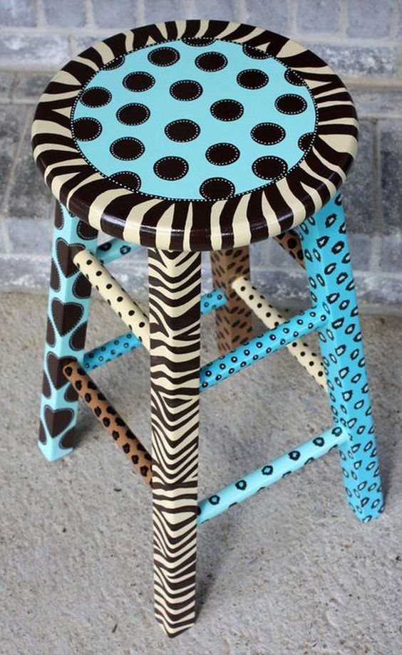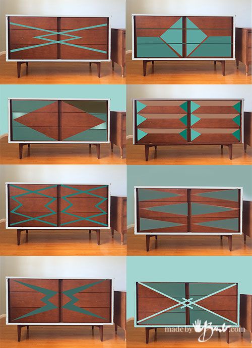 Якщо ви навіть на грам не художник, зробити на меблях красиві візерунки вам точно вдасться. Це може бути абстрактний або геометричний малюнок, яких можна зробити за допомогою малярного паперового скотчу. Наклеюєте скотч, проміжки зафарбовуєте, а після висихання скотч знімаєте – і маєте красиві рівні смужки, фігури чи абстрактний малюнок.