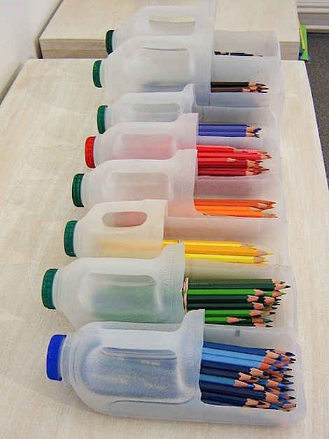 - Тримачі для ручок та олівців. Великі пластикові баночки можна використовувати як підставки для ручок, олівців чи пензликів. Для дітей це може стати частиною творчого проєкту: разом прикрасіть ємності фарбами чи наліпками.