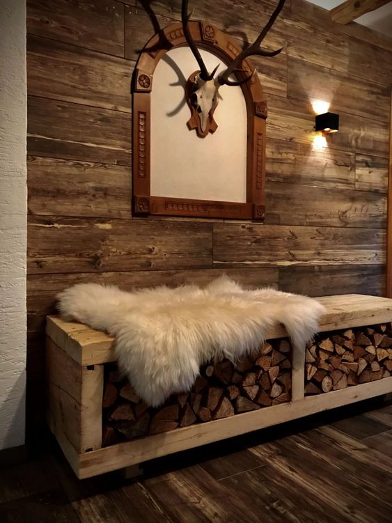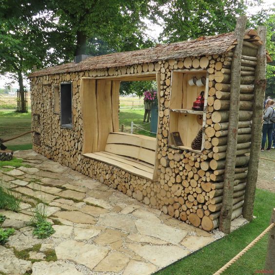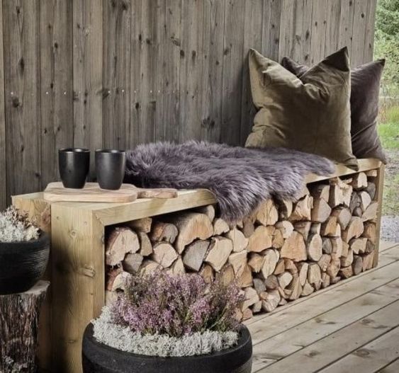 - Дровітня з лавкою. Додайте з одного боку дровітні лавку, щоб створити місце для відпочинку, звідки можна милуватися краєвидами вашого саду.