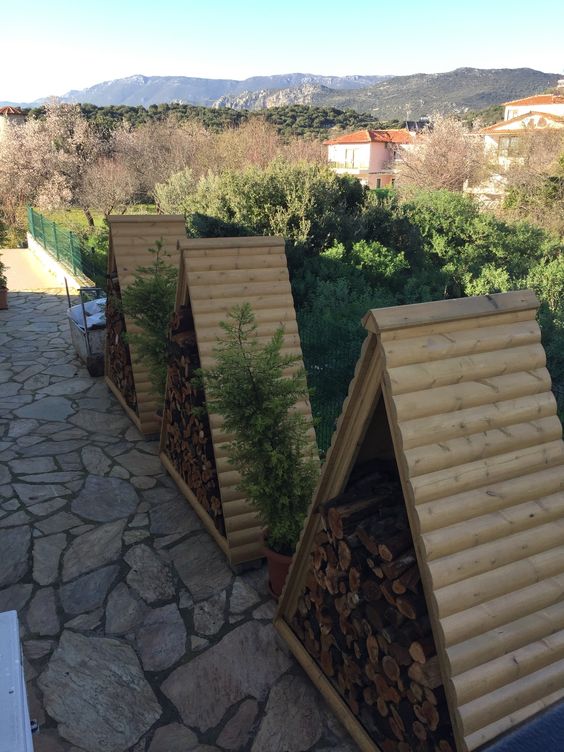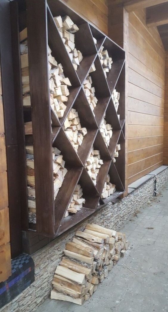 - Вертикальна дровітня. Якщо простір обмежений, розгляньте можливість створення вертикальної дровітні, яка займає мінімум місця, але дозволяє зберігати достатню кількість дров.