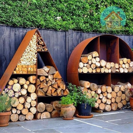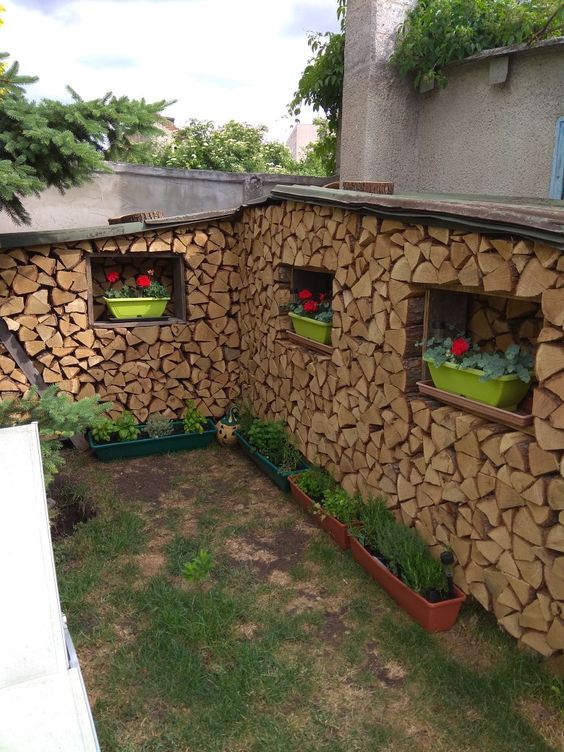 Оригінальні ідеї дровітні для ландшафтного дизайну