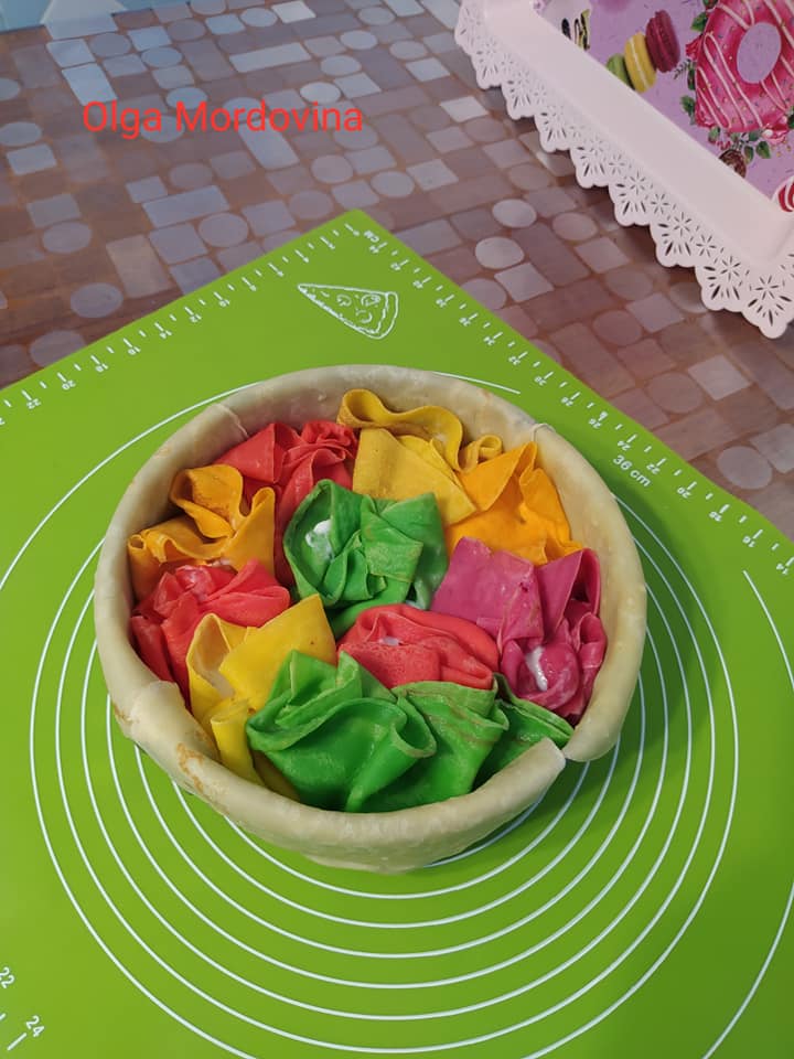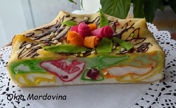 Хочете приготувати щось незвичайне? Тоді зробіть такий яскравий казковий торт із млинців. Розріз - неймовірний, смак - супер! Як сформувати - дивіться покрокові фото!