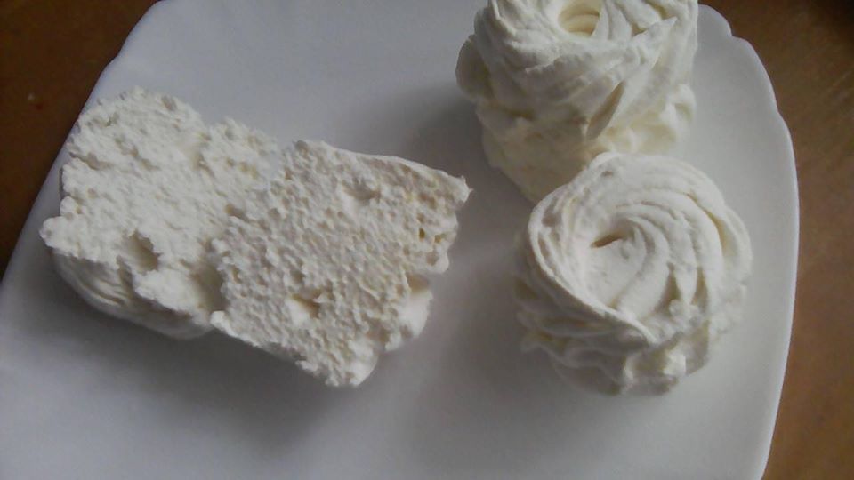 • якщо зефір після відстоювання (це 8-12 год) зверху та всередині вологий, найімовірніше, не доварили сироп до вказаної температури,