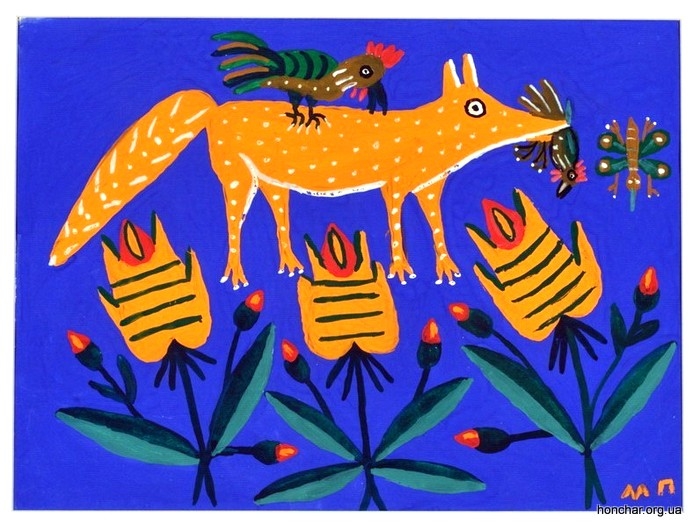 • “Хитра лисиця ведмедику каже: “Їж кукурудзу — поправишся” — а собі курочку несе та медок п’є; в ній сила є”.
